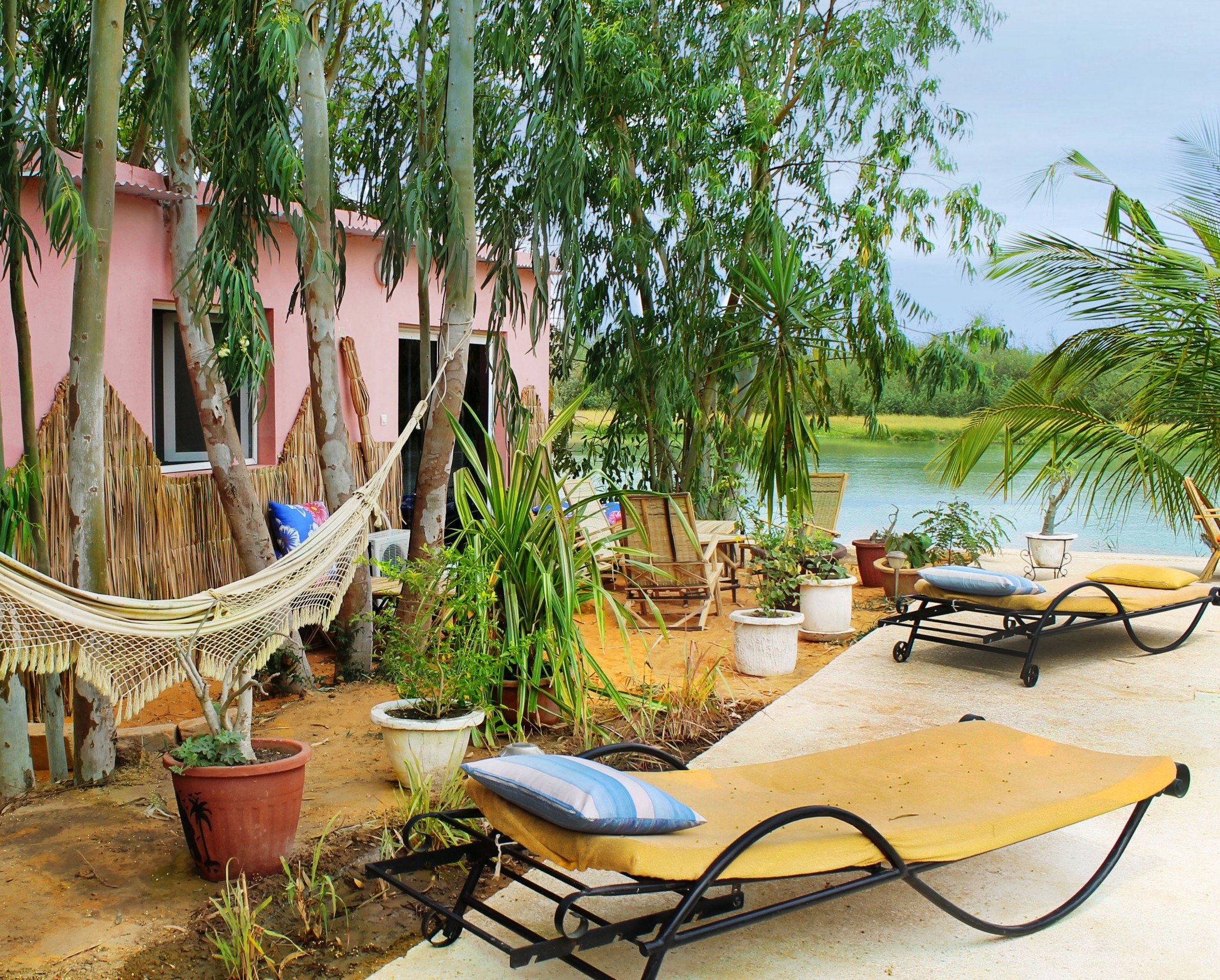 Vue sur le fleuve et la piscine du Lampsar Lodge
